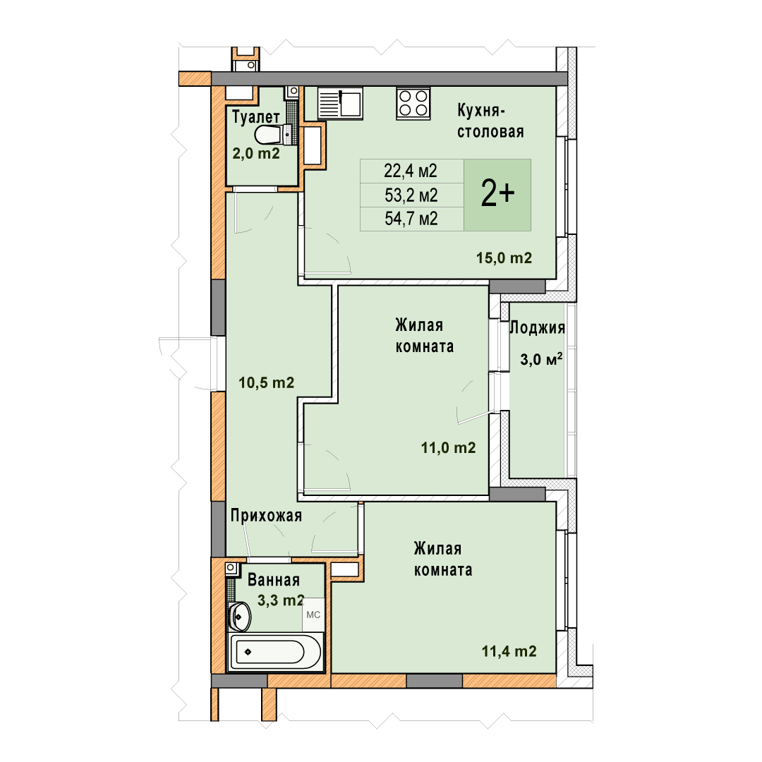 Квартира в Кузнечиха Город 54.7м2 на 7 этаже за 9 152 370 Р.