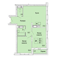 2-комнатная квартира - 55.6м2