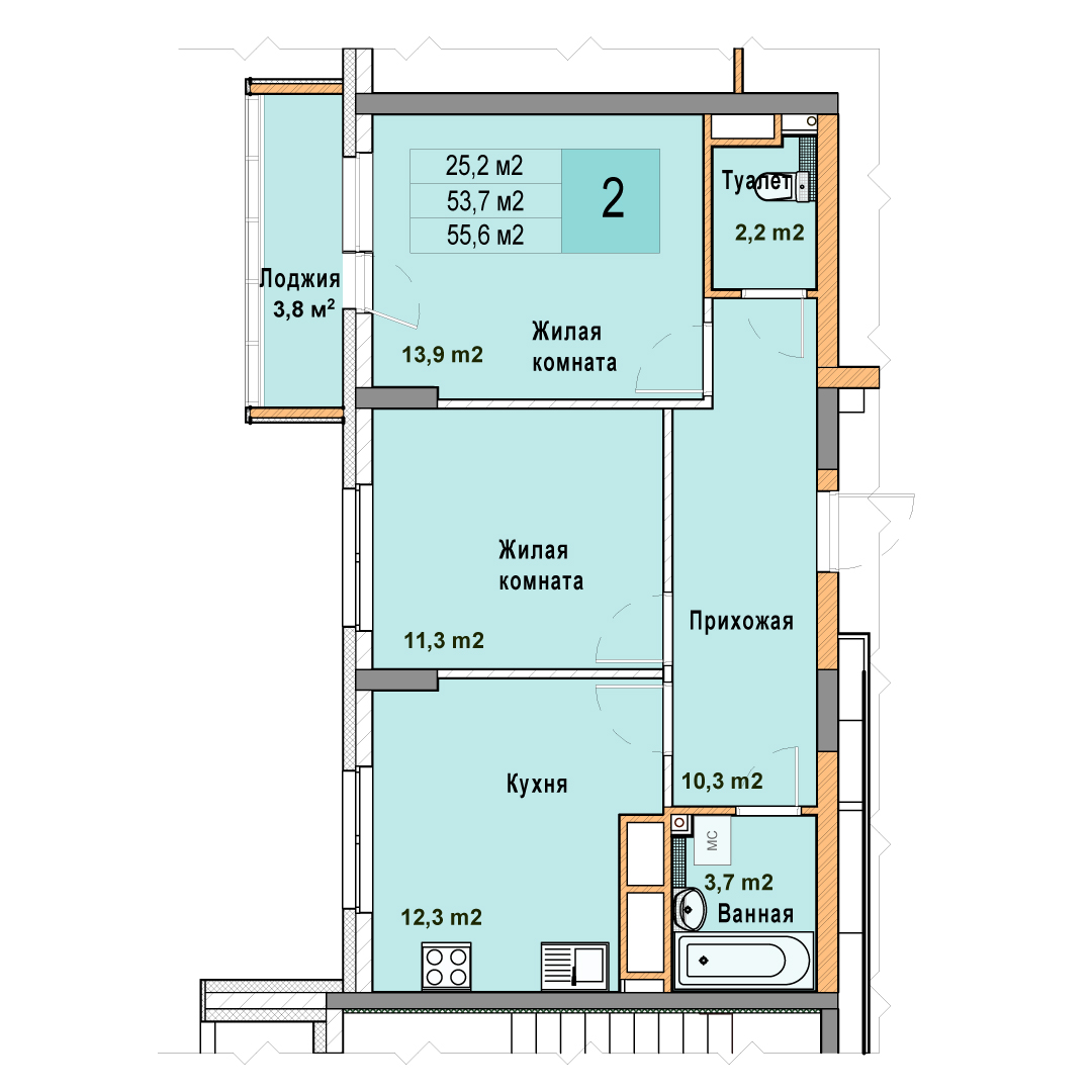 Квартира в Кузнечиха Город 55.6м2 на 20 этаже за 9 184 850 Р.