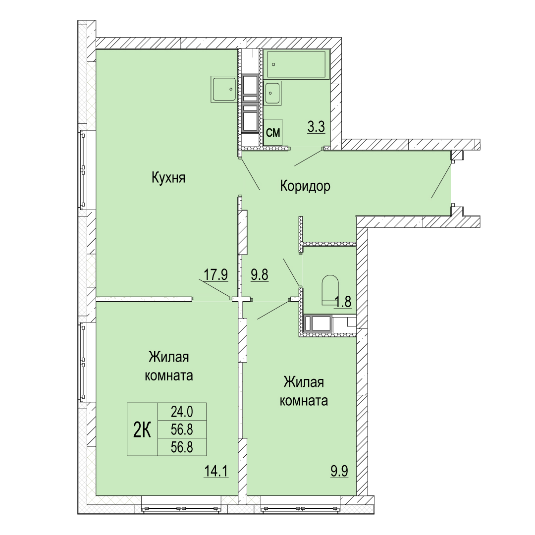 Квартира в Кузнечиха Город 56.8м2 на 4 этаже за 9 410 455 Р.