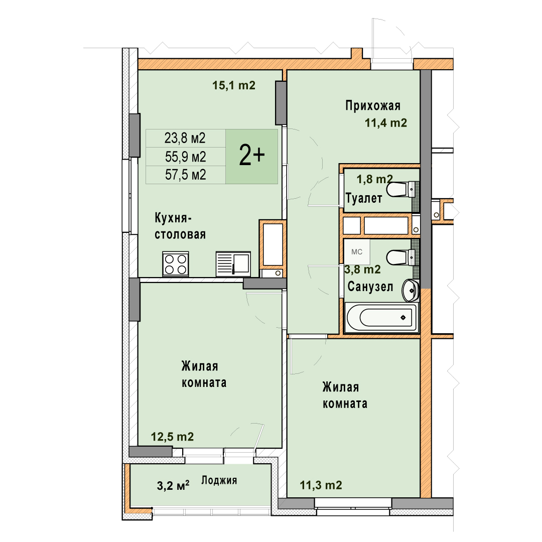 Квартира в Кузнечиха Город 57.5м2 на 21 этаже за 9 376 850 Р.