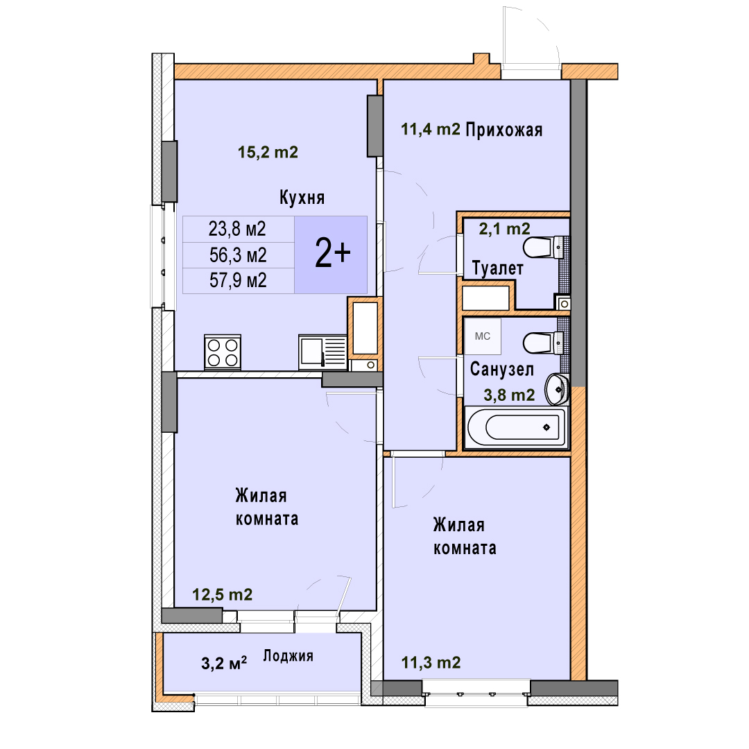 Квартира в Кузнечиха Город 57.9м2 на 17 этаже за 9 755 231 Р.