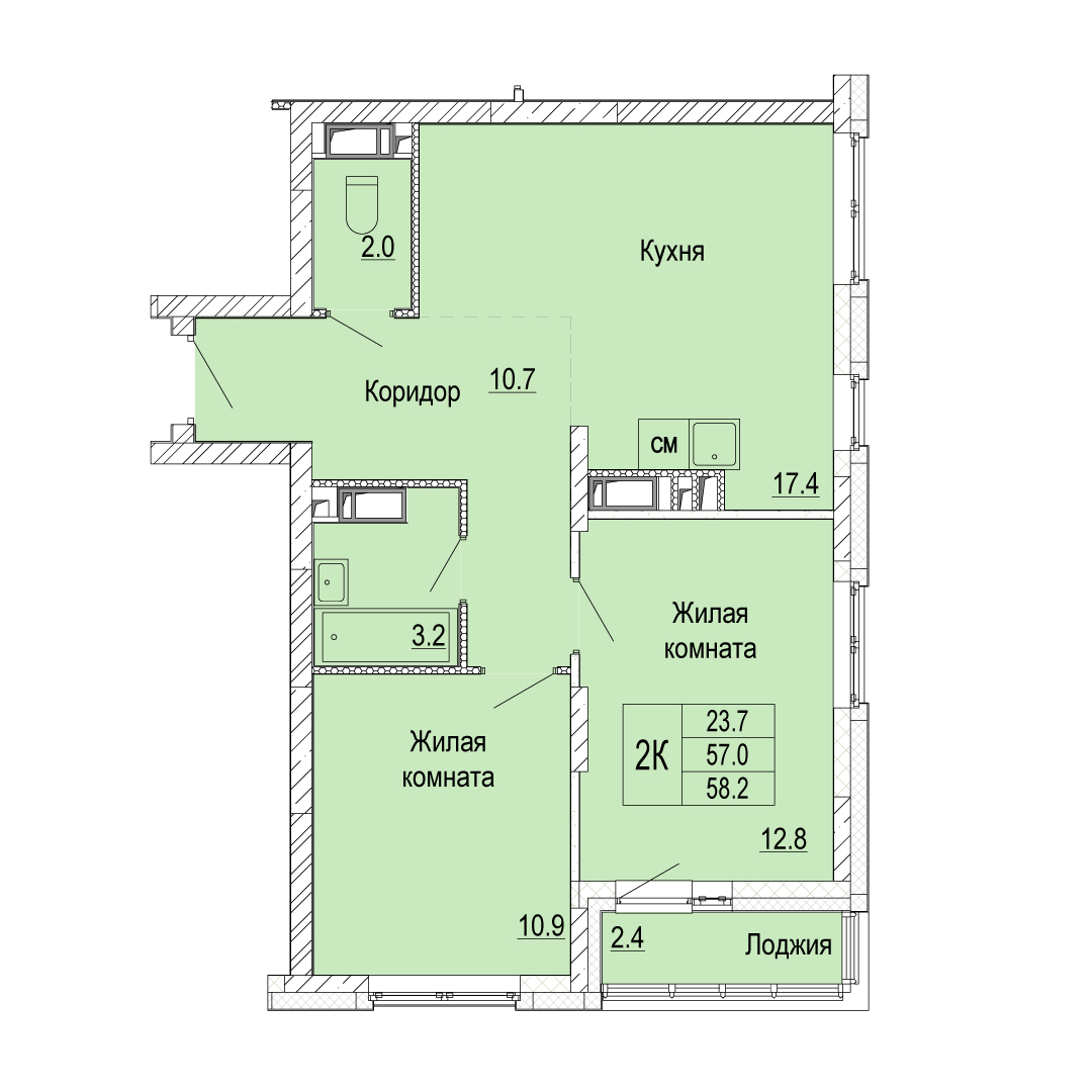 Квартира в Кузнечиха Город 58.2м2 на 13 этаже за 9 853 445 Р.