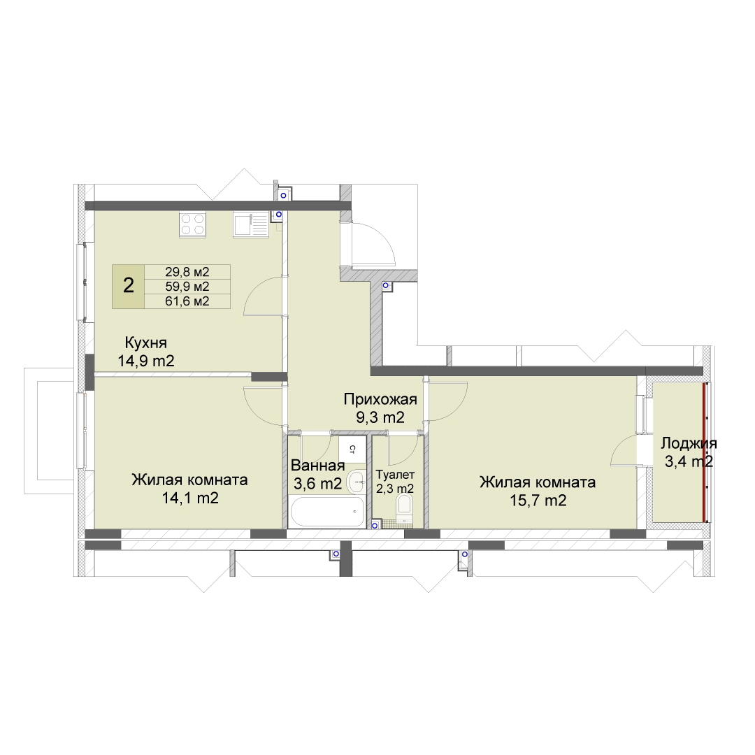 Квартира в Кузнечиха Город 61.6м2 на 1 этаже за 9 028 319 Р.