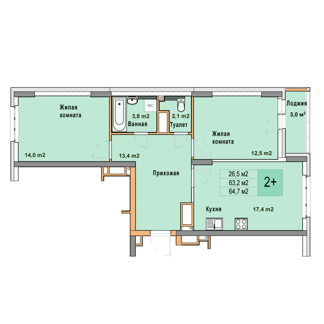 Квартира в Кузнечиха Город 64.7м2 на 21 этаже за 10 187 771 Р.