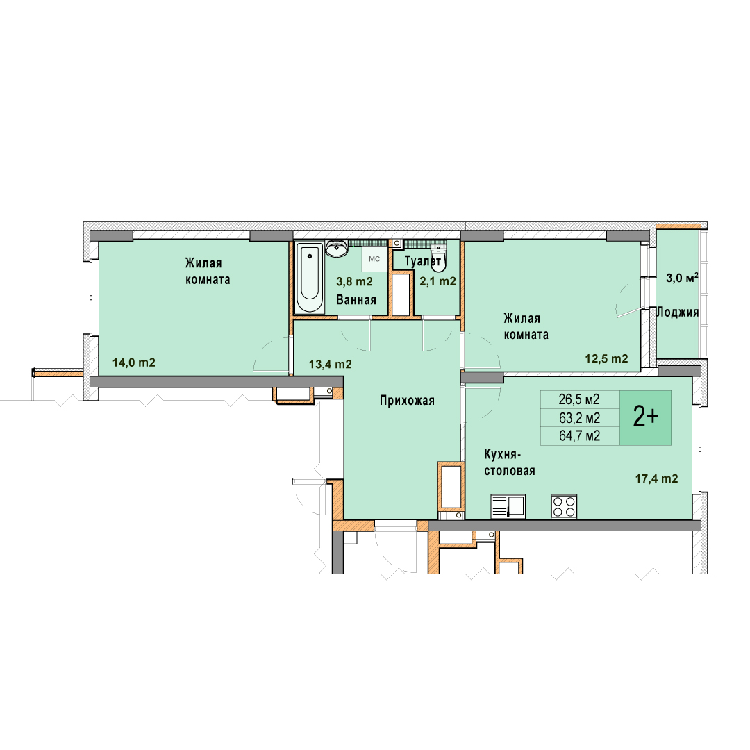 Квартира в Кузнечиха Город 64.7м2 на 21 этаже за 10 314 850 Р.
