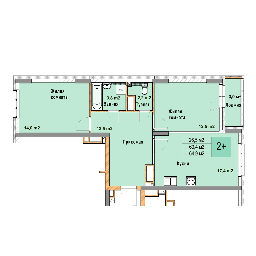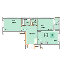 2-комнатная квартира - 64.9м2