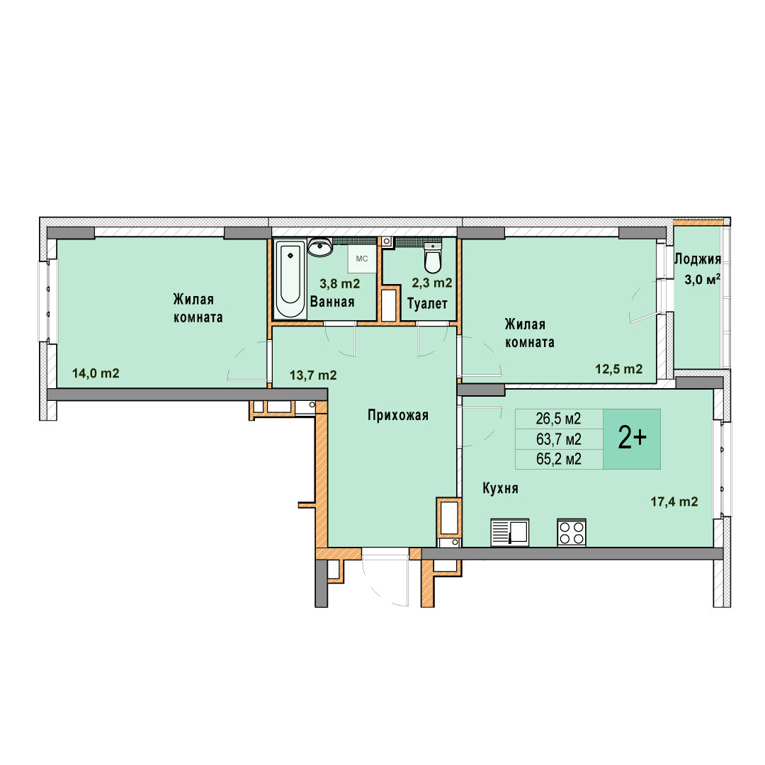 Квартира в Кузнечиха Город 65.2м2 на 8 этаже за 10 187 771 Р.