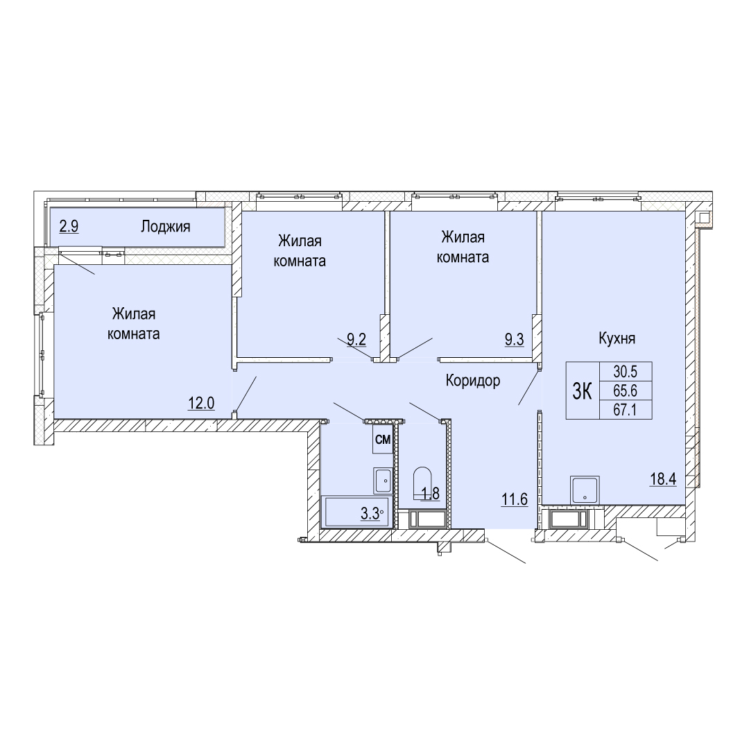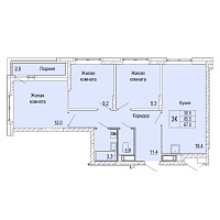 3-комнатная квартира - 67.1м2