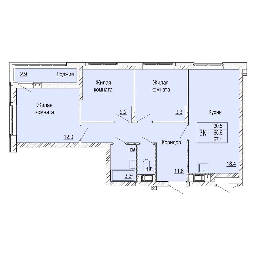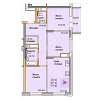 3-комнатная квартира - 67.1м2