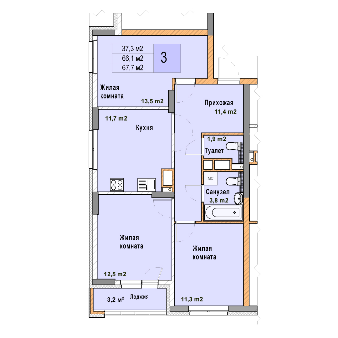Квартира в Кузнечиха Город 67.7м2 на 10 этаже за 10 704 850 Р.