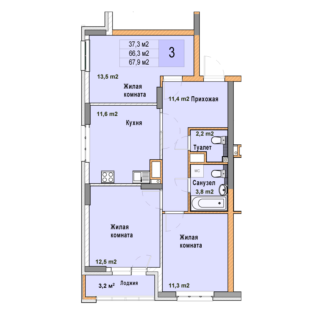 Квартира в Кузнечиха Город 67.9м2 на 14 этаже за 11 213 231 Р.