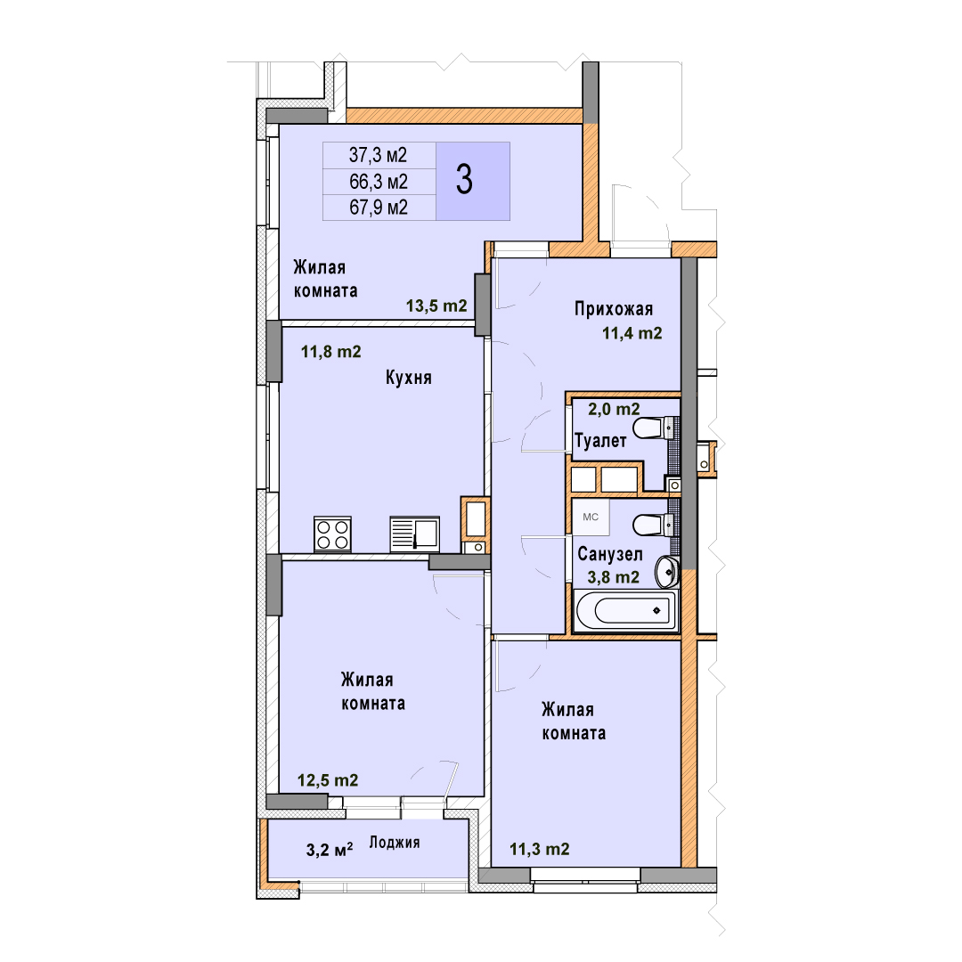 Квартира в Кузнечиха Город 67.9м2 на 5 этаже за 10 704 850 Р.