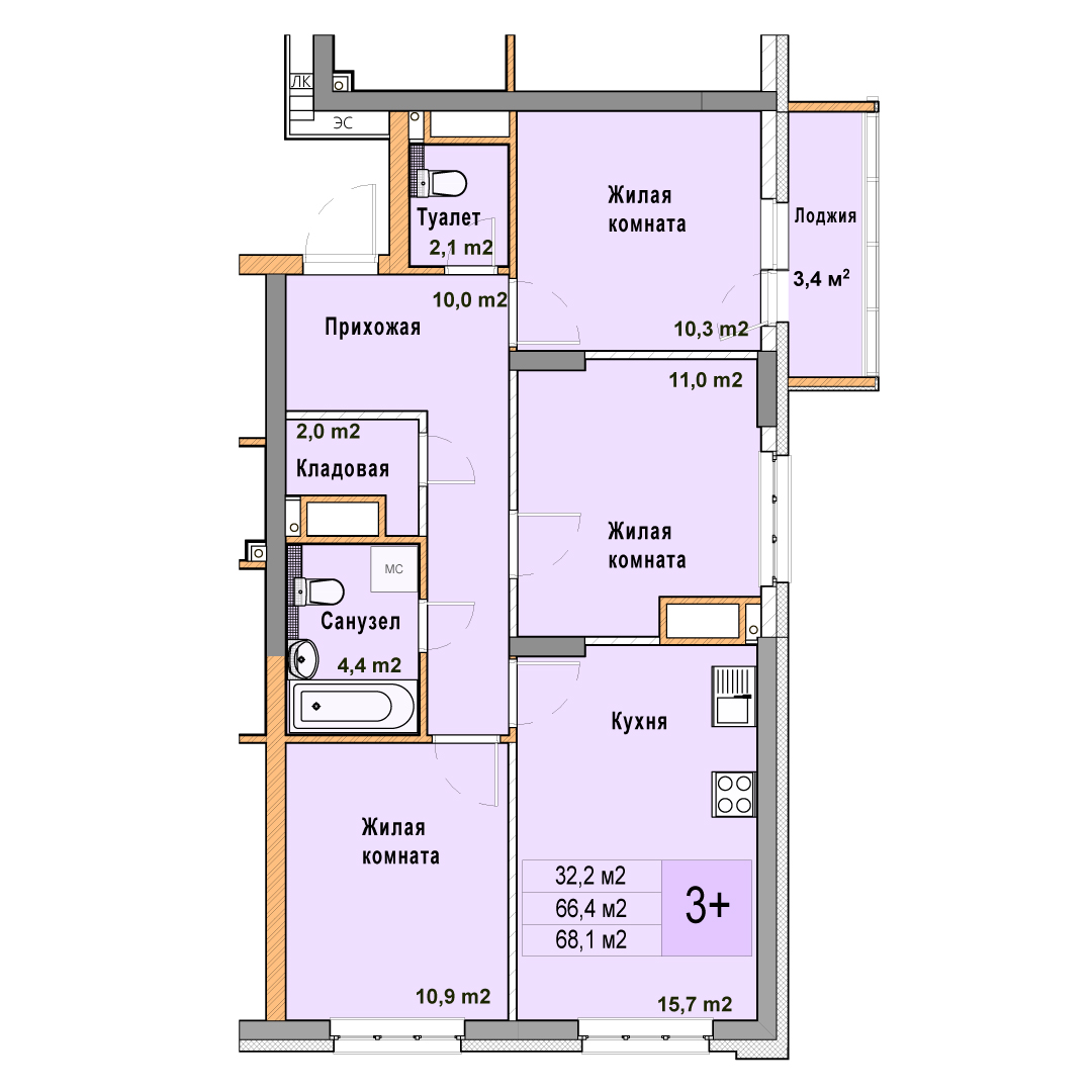 Квартира в Кузнечиха Город 68.1м2 на 23 этаже за 11 418 671 Р.