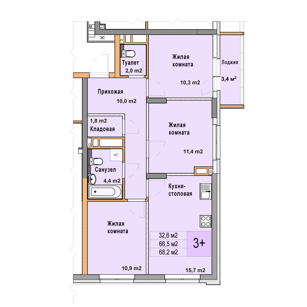 Квартира в Кузнечиха Город 68.2м2 на 4 этаже за 11 204 850 Р.