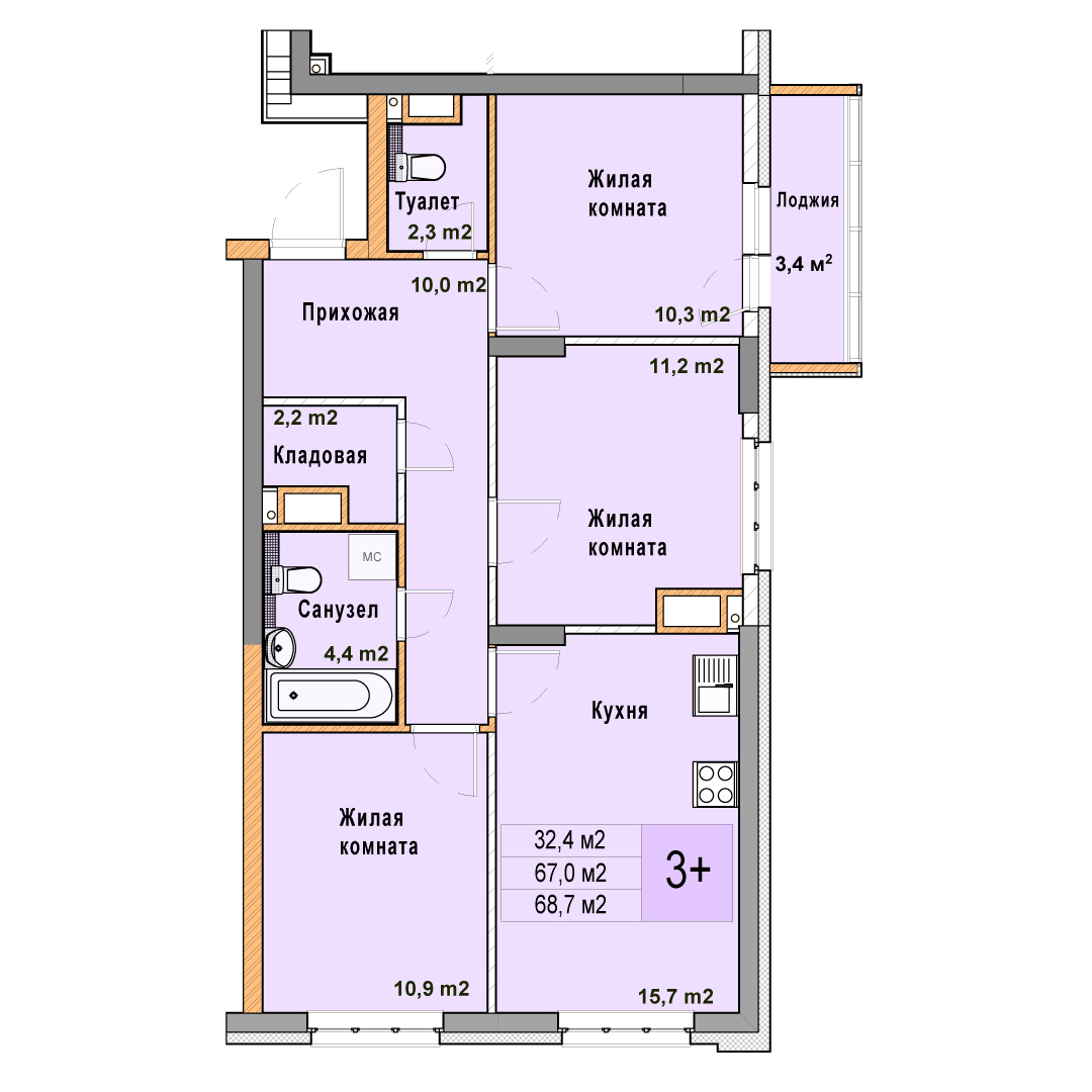 Квартира в Кузнечиха Город 68.7м2 на 11 этаже за 11 418 671 Р.