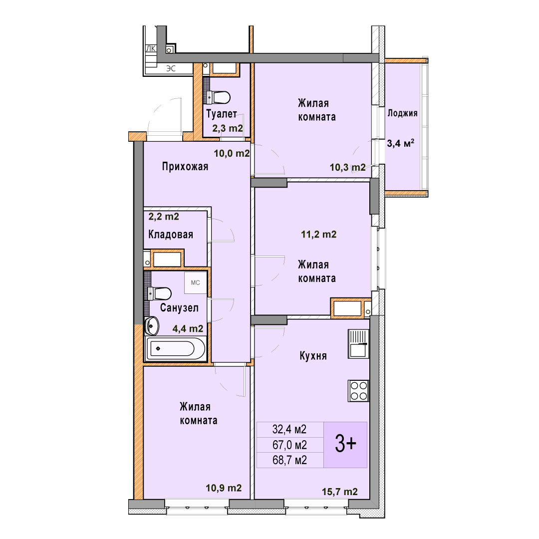 Квартира в Кузнечиха Город 68.7м2 на 14 этаже за 11 418 671 Р.