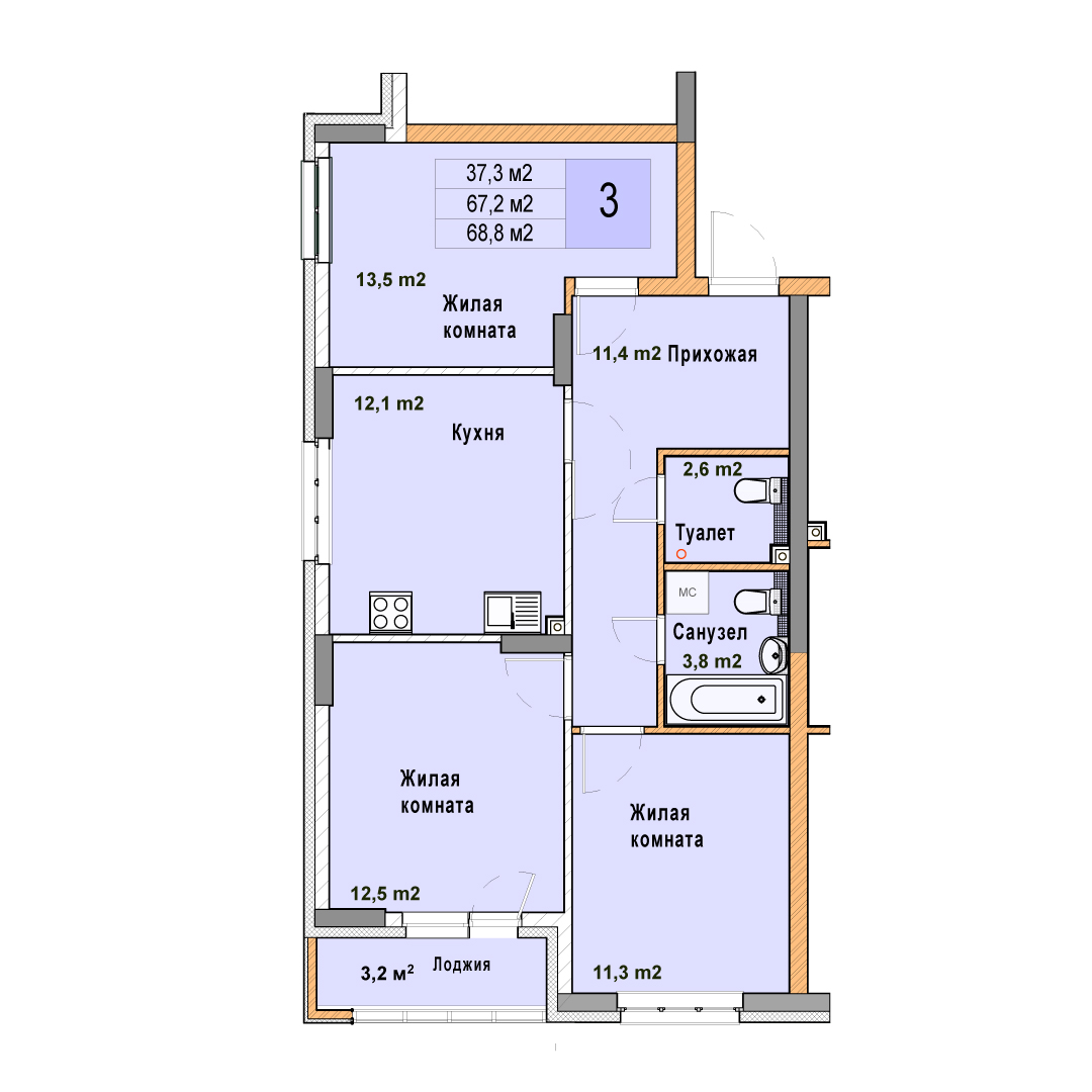 Квартира в Кузнечиха Город 68.8м2 на 2 этаже за 11 396 842 Р.