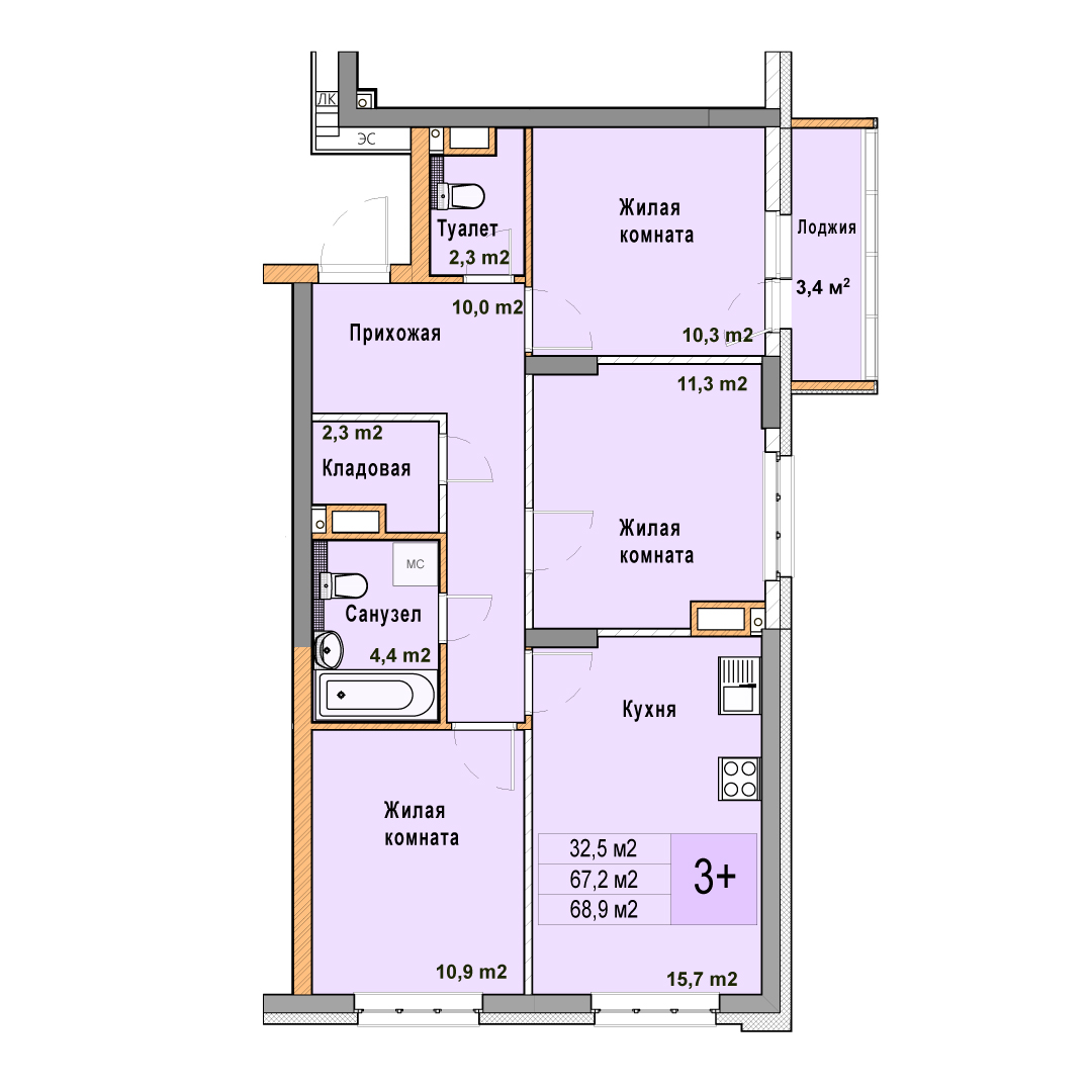 Квартира в Кузнечиха Город 68.9м2 на 8 этаже за 11 418 671 Р.