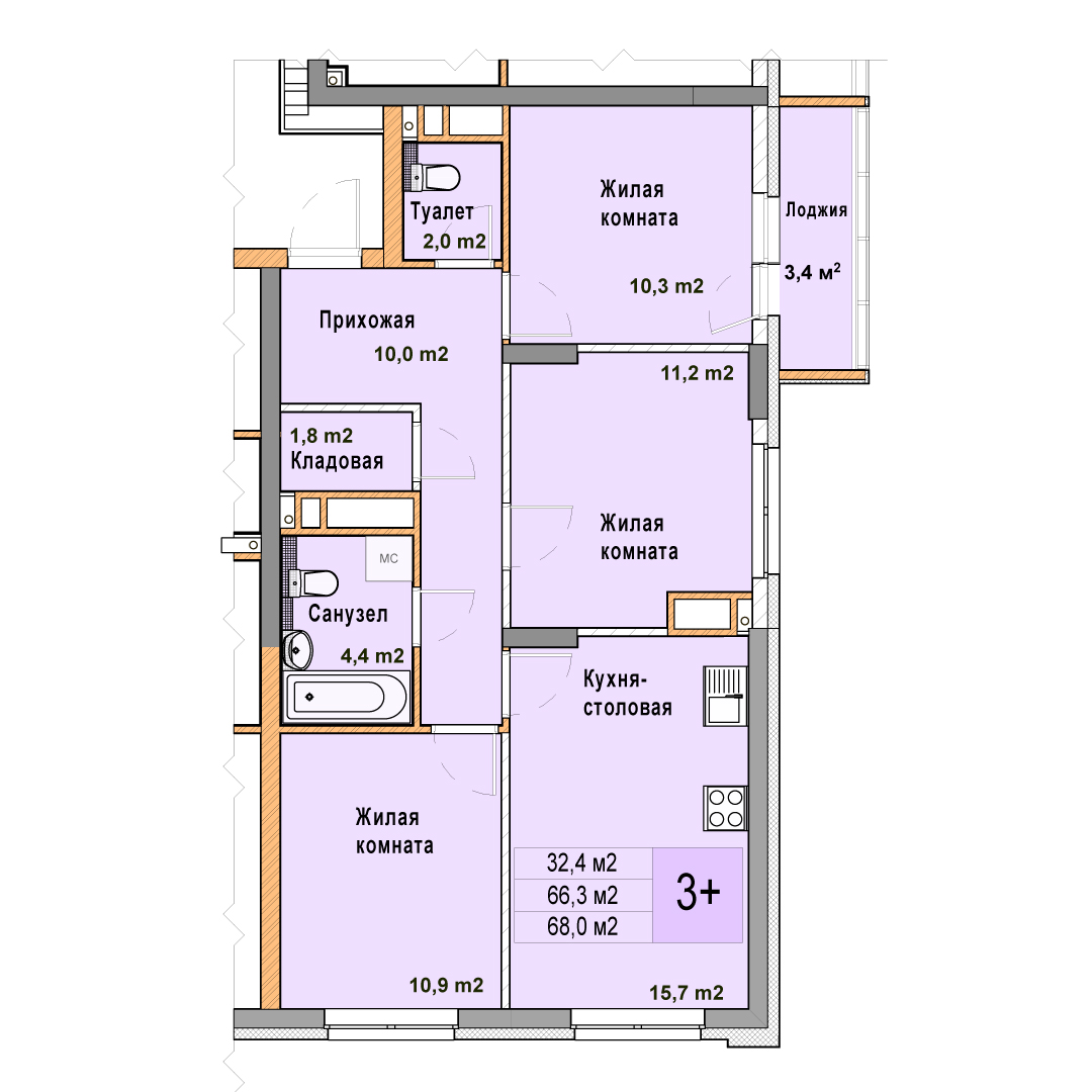 Квартира в Кузнечиха Город 68м2 на 13 этаже за 11 204 850 Р.