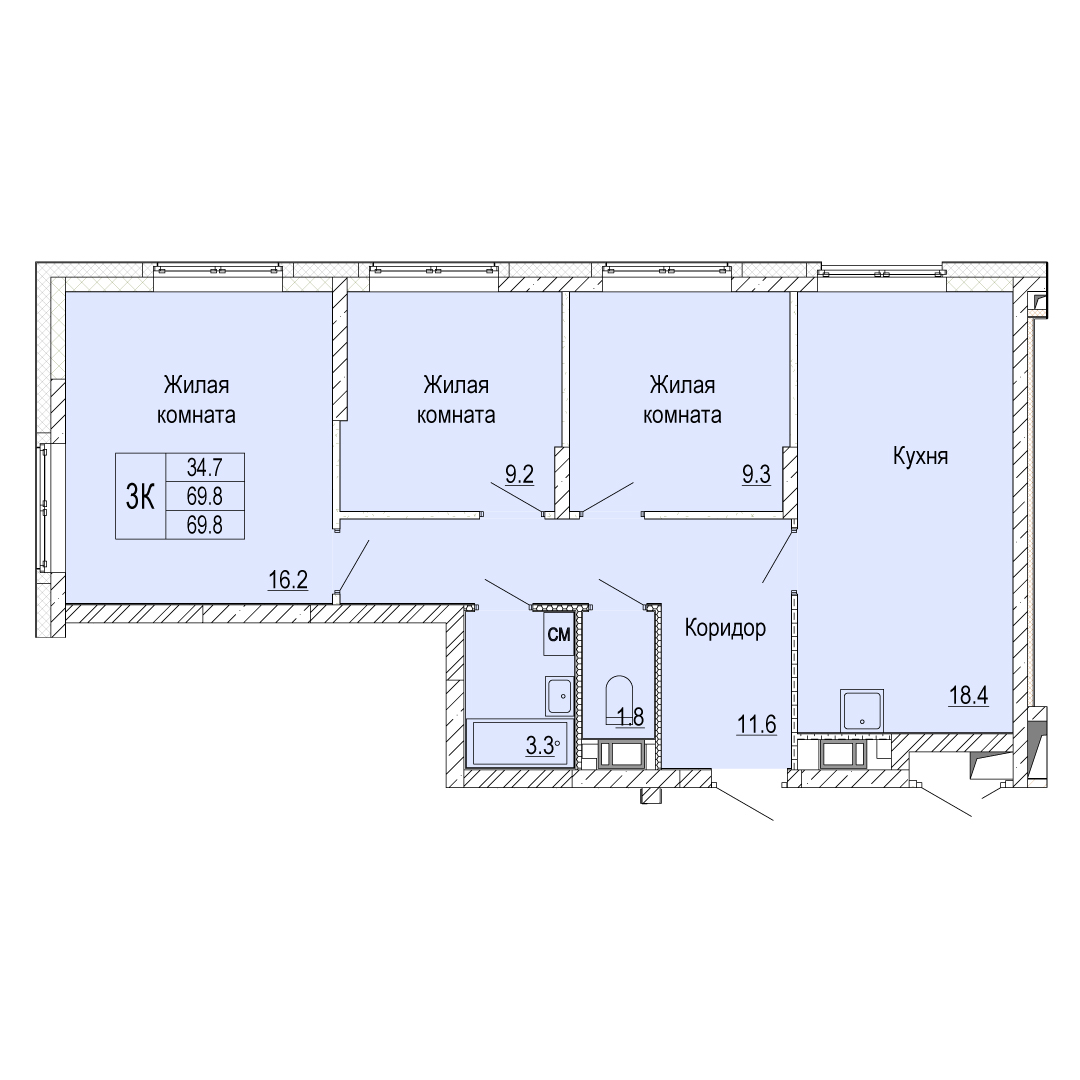 Квартира в Кузнечиха Город 69.8м2 на 5 этаже за 10 952 975 Р.