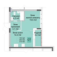 3-комнатная квартира - 72.8м2