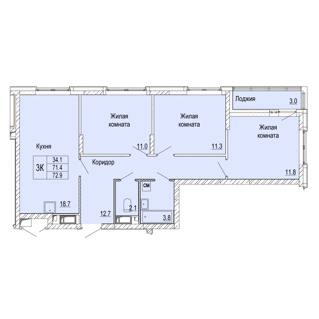 Квартира в Кузнечиха Город 72.9м2 на 13 этаже за 11 382 545 Р.