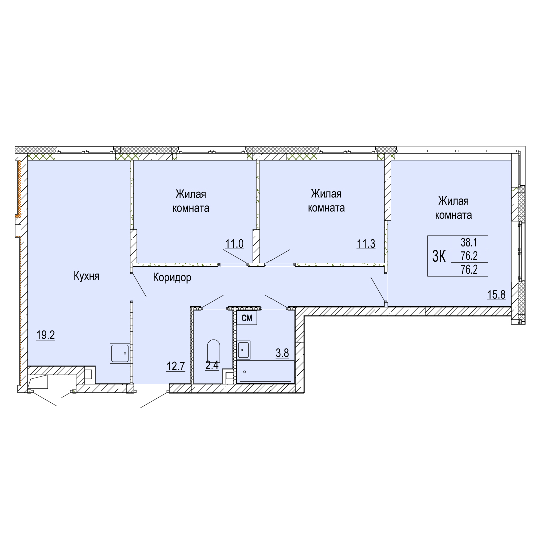 Квартира в Кузнечиха Город 76.2м2 на 2 этаже за 11 113 409 Р.