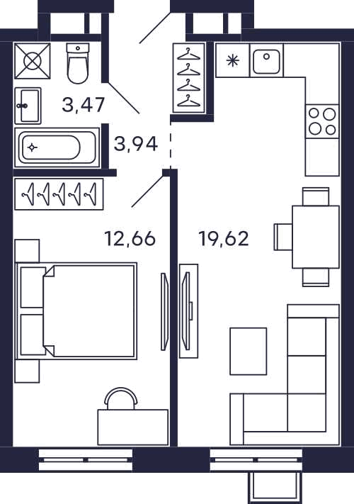 Квартира в Квартал Тетрис 39.69м2 на 16 этаже за 12 194 197 Р.
