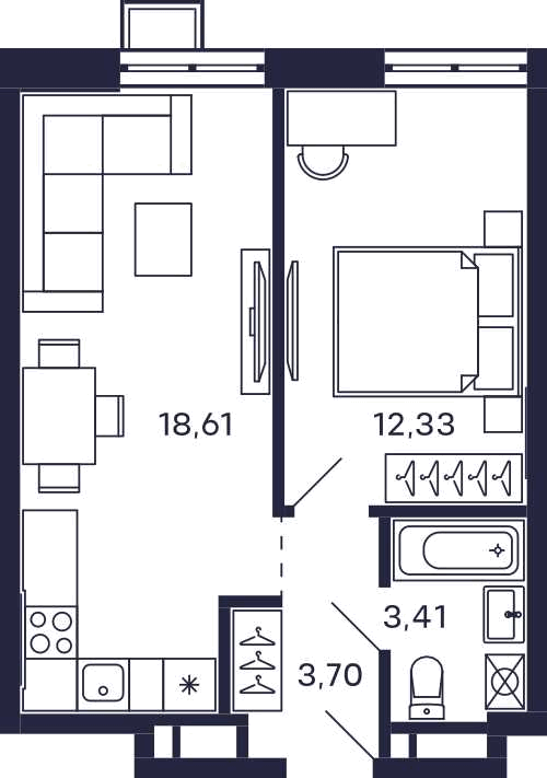 Квартира в Квартал Тетрис 39.74м2 на 11 этаже за 11 791 216 Р.