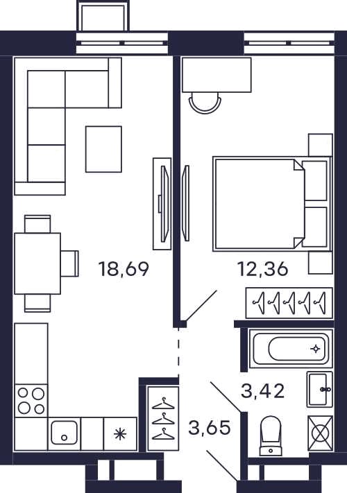 Квартира в Квартал Тетрис 39.82м2 на 25 этаже за 12 763 823 Р.