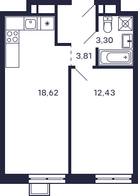 Квартира в Квартал Тетрис 39.86м2 на 26 этаже за 13 329 383 Р.