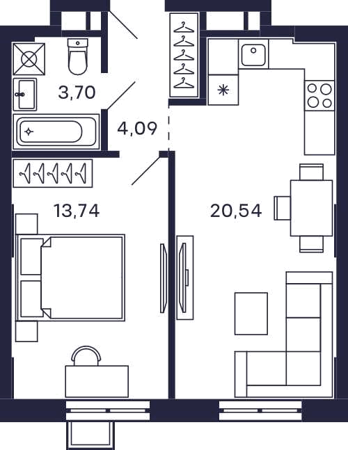 Квартира в Квартал Тетрис 43.78м2 на 8 этаже за 12 388 777 Р.