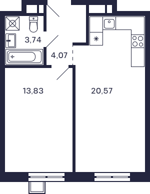 Квартира в Квартал Тетрис 44.1м2 на 19 этаже за 12 735 463 Р.