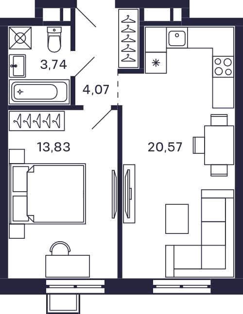 Квартира в Квартал Тетрис 44.1м2 на 28 этаже за 12 984 275 Р.