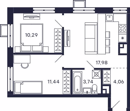 Квартира в Квартал Тетрис 49.54м2 на 23 этаже за 15 126 791 Р.