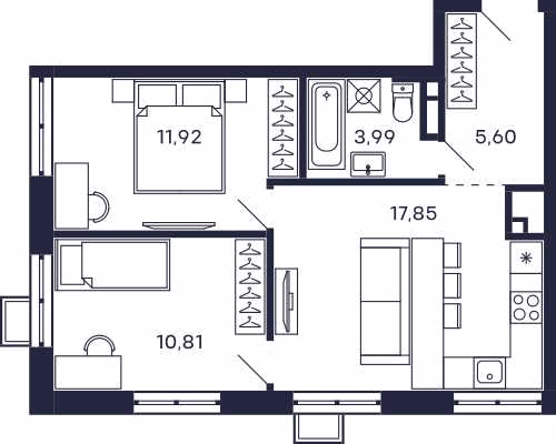2-комнатная квартира - 52.18м2