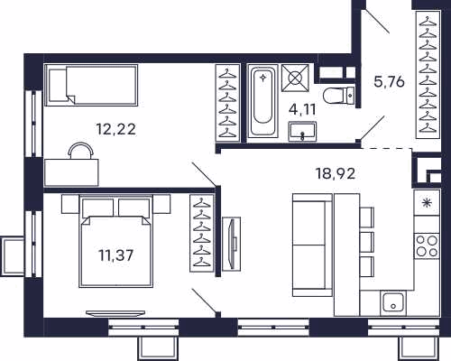 Квартира в Квартал Тетрис 52.38м2 на 16 этаже за 15 408 467 Р.