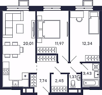 Квартира в Квартал Тетрис 56.05м2 на 18 этаже за 15 097 180 Р.