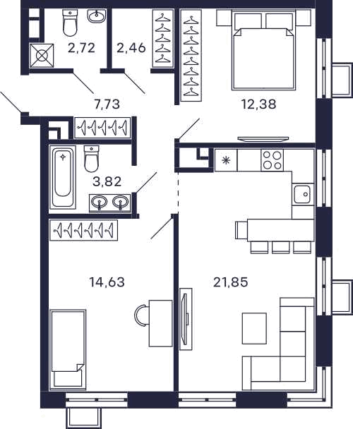 Квартира в Квартал Тетрис 67.33м2 на 28 этаже за 18 474 813 Р.