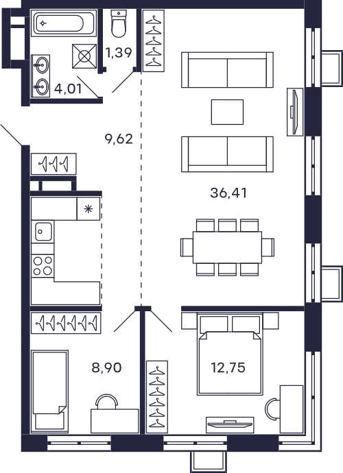 Квартира в Квартал Тетрис 73.08м2 на 16 этаже за 17 634 131 Р.