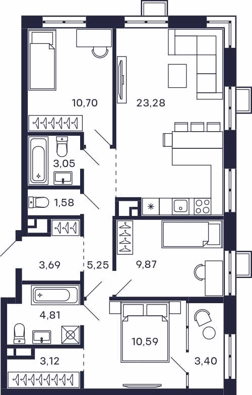 Квартира в Квартал Тетрис 81.52м2 на 19 этаже за 21 013 492 Р.