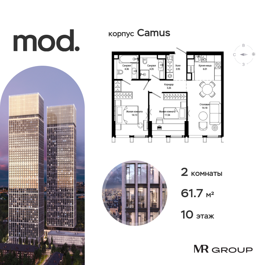 Квартира в Mod 61.90м2 на 10 этаже за 36 620 040 Р.