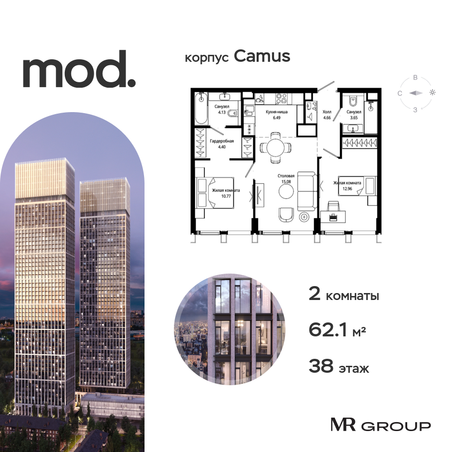 Квартира в Mod 62.14м2 на 38 этаже за 37 613 342 Р.