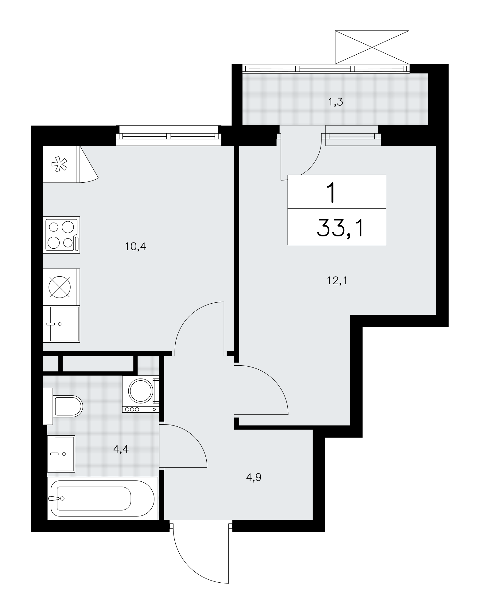 1-комнатная квартира - 33.1м2