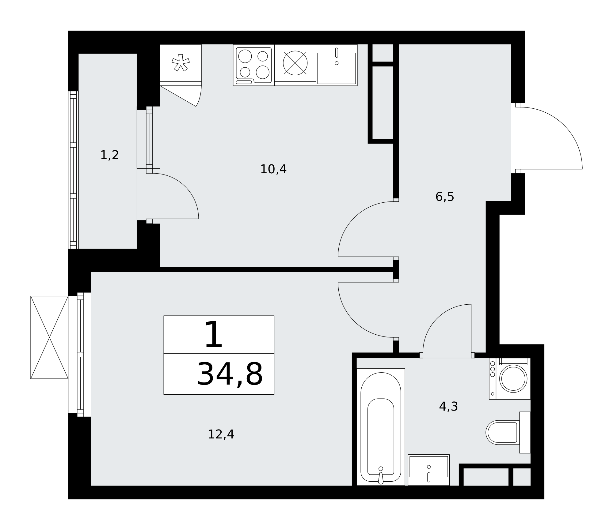 1-комнатная квартира - 34.8м2