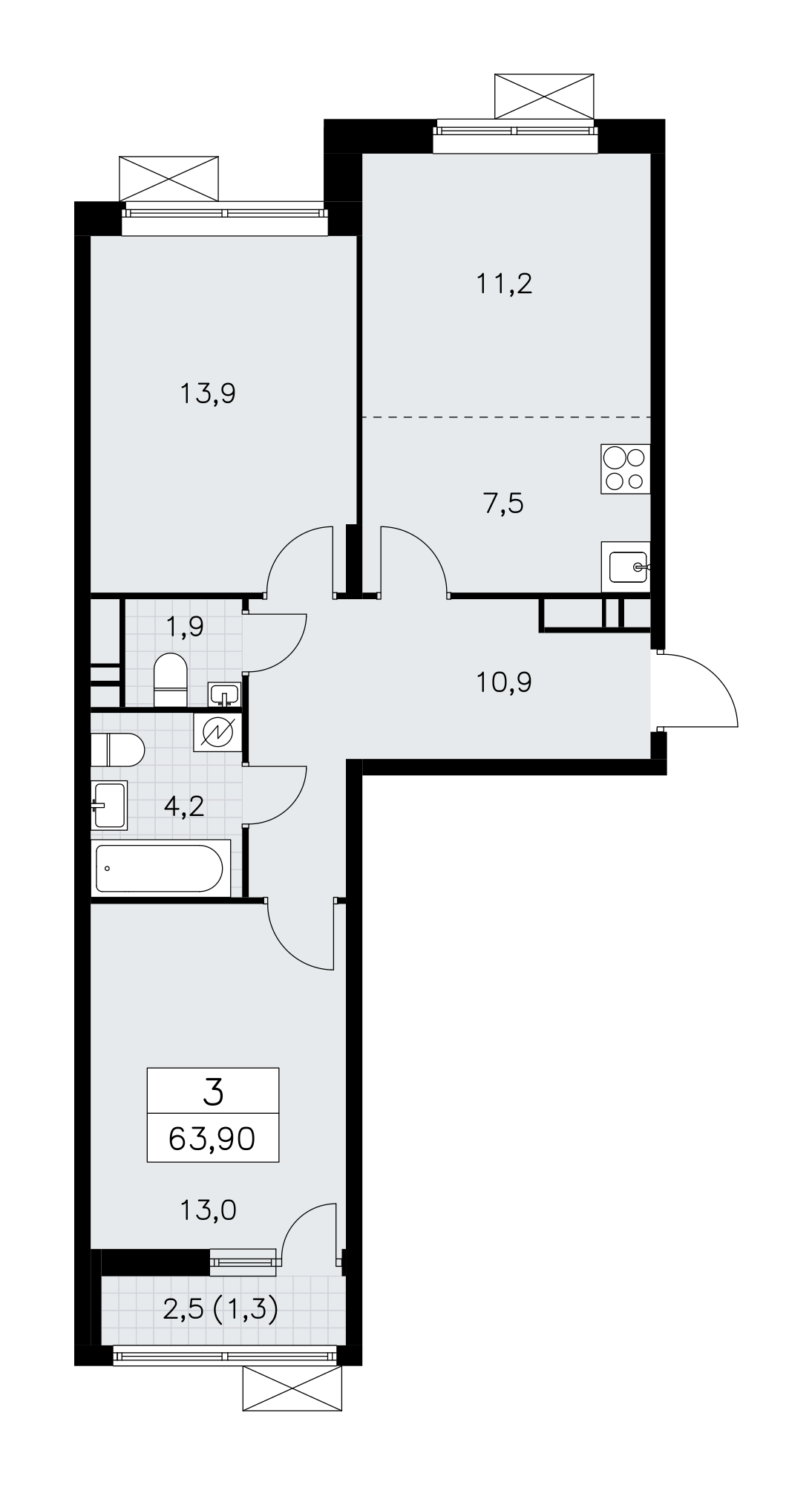 Квартира в Прокшино 63.9м2 на 13 этаже за 19 192 075 Р.
