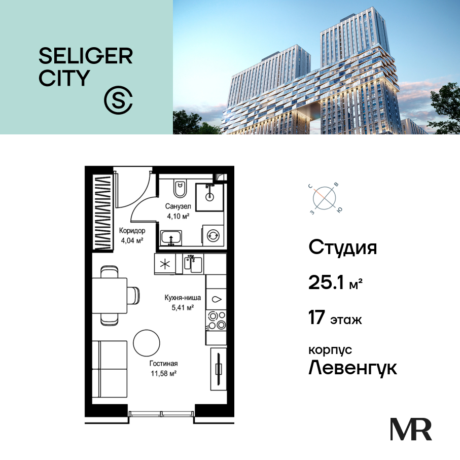 Квартира в Селигер Сити 25.13м2 на 17 этаже за 20 646 808 Р.