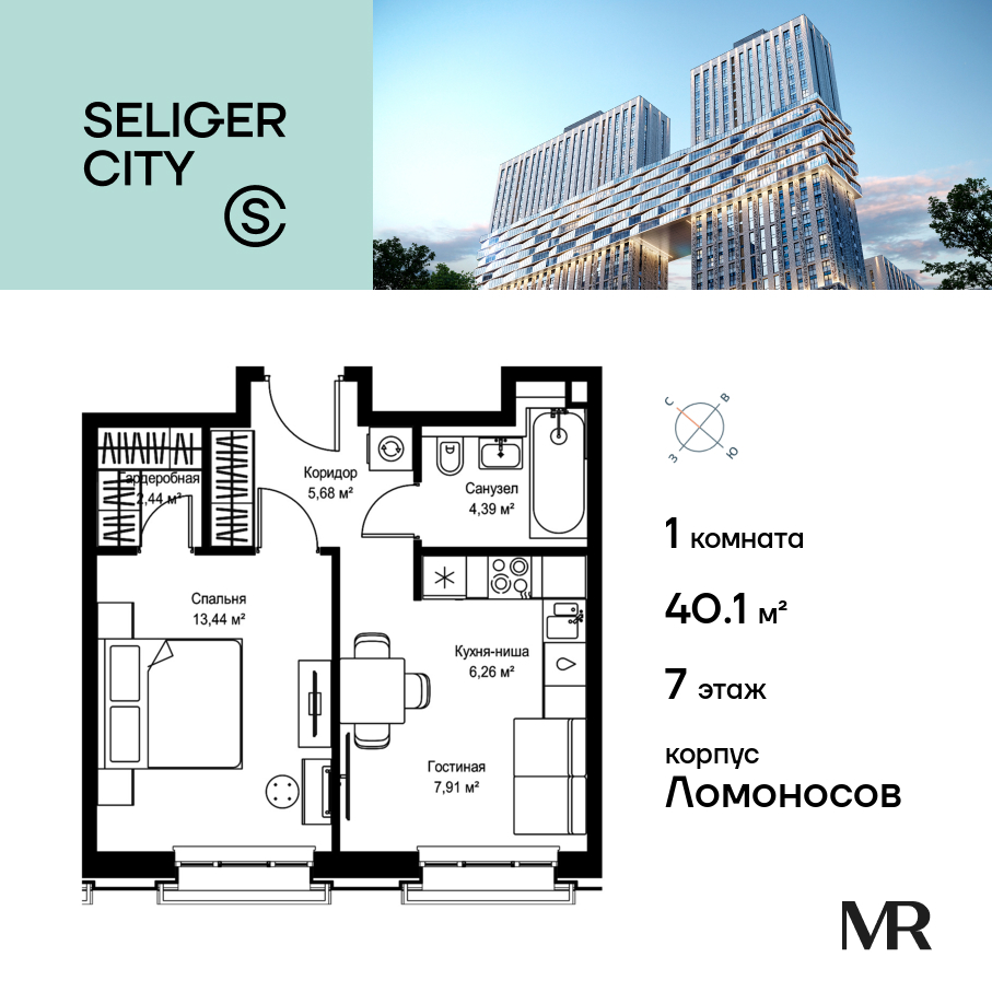 Квартира в Селигер Сити 40.12м2 на 7 этаже за 27 149 204 Р.