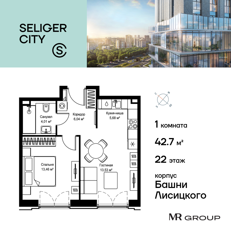 Квартира в Селигер Сити 42.72м2 на 22 этаже за 24 499 920 Р.